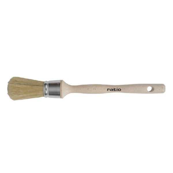 Fibra de cerda especial con PET. Especial para recortar. Su forma redondeada facilita la carga de pintura para lograr un acabado más uniforme con una óptima nivelación. Acabado de precisión. Para todo tipo de pinturas. Mango ergonómico de madera encerada y barnizada. Virola de aluminio anodizado. Nº 6.