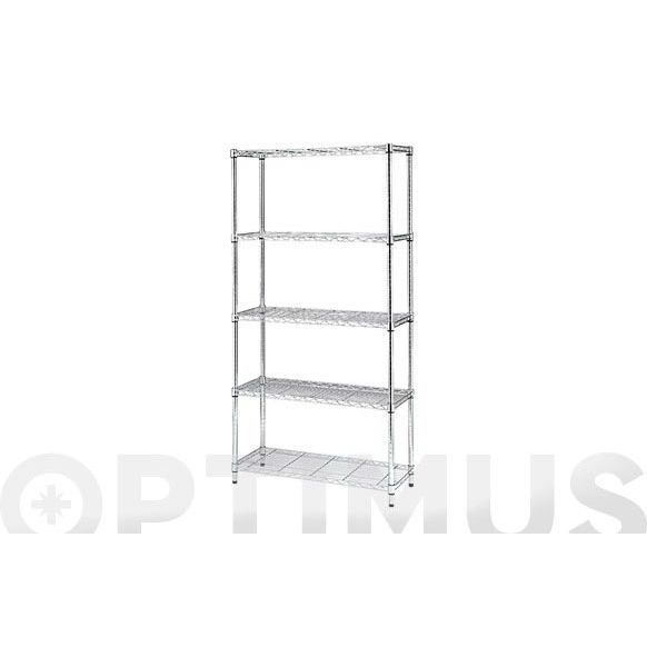 5 estantes regulables. Acabado metal cromado. 90x35xh.180 cm.