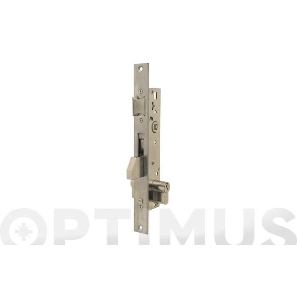 Palanca-gancho basculante. Golpe y llave, reversible (la llave no acciona el picaporte). Acero inoxidable. Entrada 25 mm.