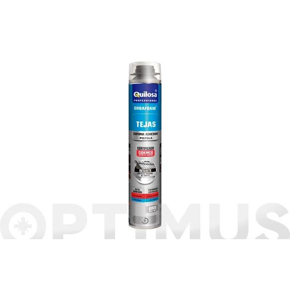 Color gris, especial para la fijaci?n de todo tipo de tejas sobre hormig?n, madera, fibrocemento, etc. Adhesivo que cura con la humedad atmosf?rica apto sobre sustratos h?medos, mojados o secos. Pistola. 750 ml.