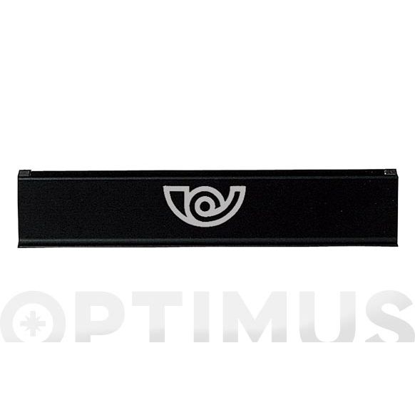 Perfil aluminio pintado. 282x58 mm. Entrada cartas 250x27 mm. Incluye pegatina decorativa. Lacado negro.