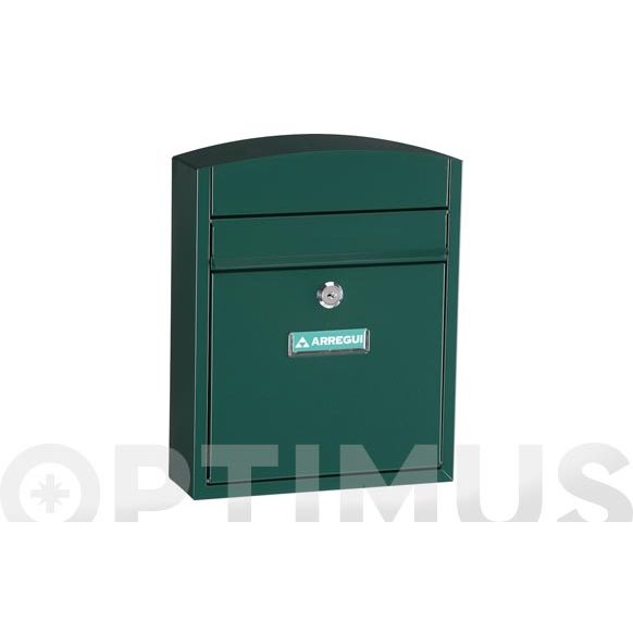 Metálico. Apertura recogecartas delantera. Permite su colocación en agrupación o individualmente. 240x95xh.285 mm. Capacidad para DIN A5. Medida boca: 175x20 mm. Verde.