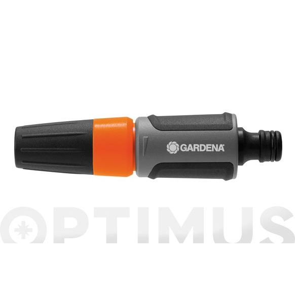 permite regular el caudal del agua desde la boquilla para limpiar o rociar. El chorro es infinitamente regulable lo que posibilita realizar numerosas tareas de limpieza exterior y riego. Lanza con manguito unido anti pérdidas fabricado a prueba de heladas. Regulación en contínuo del chorro.