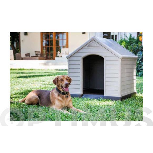 Polipropileno UV de alta calidad. Color marrón. Suelo elevado y drenado para un mejor aislamiento y mantener seca a su mascota. Resistente al agua y a los rayos UV. 95x99xh.99 cm. Puerta: 36,5xh.59 cm.