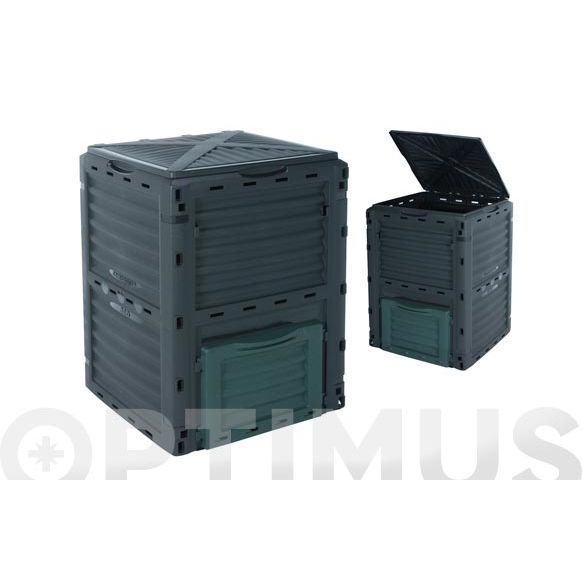 Por su tama?o se puede colocar en cualquier rinc?n del jard?n. Compuerta superior para introducir con facilidad los restos vegetales. 61x61xh.83 cm.