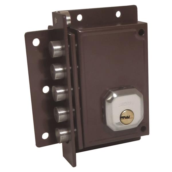 Con cilindro y cinco bulones. Sólo llave. Color marrón. C92 Cilindro redondo 3 llaves serreta. Derecha.