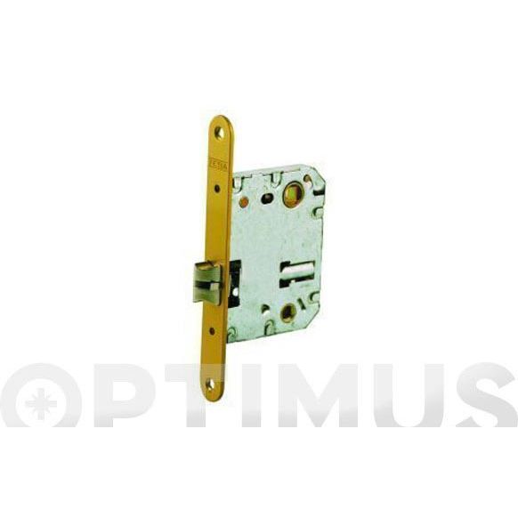 Válido indistintamente para puerta de paso o de condena. Reversible. Entrada 50 mm. Distancia entre ejes 70 mm. Frente latonado.