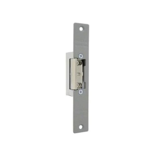 Liberación automática. Cajetín 67 mm. Automático deslizante. Reversible. 12 V. Frontal pintado gris. Largo. 250 mm. Sin desbloqueo.