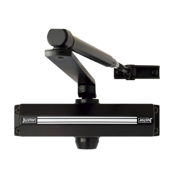 Fuerza variable EN 2-3. Puertas hasta 80 kg. Anchura de puertas hasta 110 cm. 500.000 ciclos garantizados. Norma EN 1154. Con retenedor. Negro.
