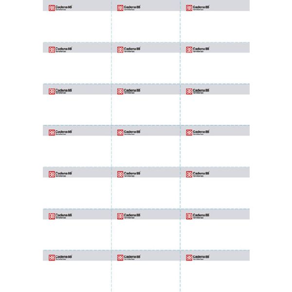 100 hojas Din A4. Hojas troquelada para portaprecios de 70x40 ó 50x40 mm. Puede imprimirlas automáticamente a través Programa Control integral-Módulo Cadena 88. Etiqueta precio Oferta Cadena88.