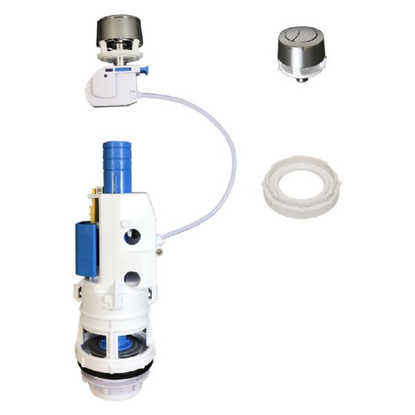 Tanque bajo. Mecanismo universal. Adaptador para bases roscadas. Se adapta a bases de Tecnoagua, bases roscadas, campanas de giro y campanas de click, tanto nuevas como antig?as. Doble pulsador con cable transmisor.