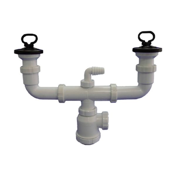 Salida horizontal con doble v?lvula y toma de electrodom?sticos. 1 1/2 x ? 70 mm. Extensible 260-390 mm.