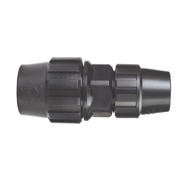 Accesorios de presión para tuberías PE. Etiquetado con código EAN individual. Según normas UNE-EN 712 y EN 715. Manguito reducido 25-20