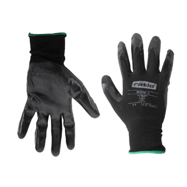 Nilón negro sin costuras, muy resistente recubrimiento nitrilo negro en palma, alta calidad. Galga 13. Puño elástico. El soporte sin costuras proporciona ergonomÃa y no provoca fatiga. Usos: agricultura, automoción, logÃstica, mecánica, montaje, etc. Cat II EN 388. Talla 8.