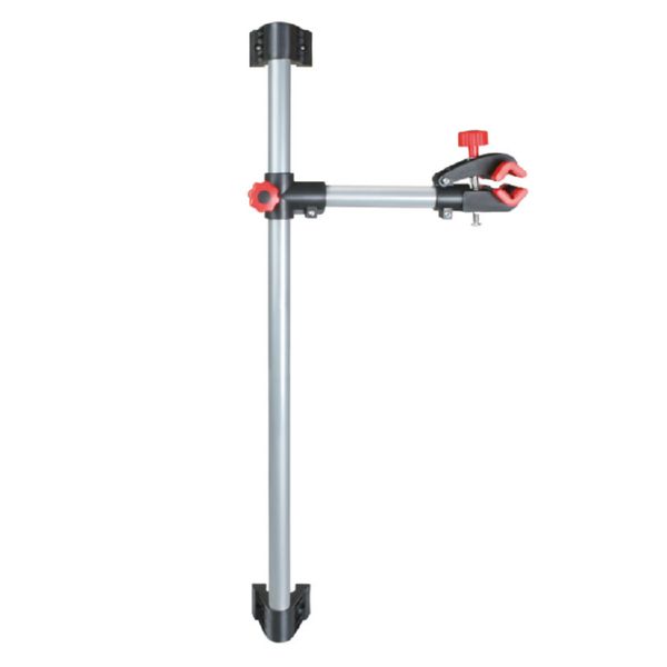 Estructura de acero. Robusta y funcional. Altura regulable. Brazo giratorio 180º. Mordaza universal para tubos 25-40 mm. Incluye tornillos y tacos. Para anclaje sobre pared. Carga máxima 20 kg.