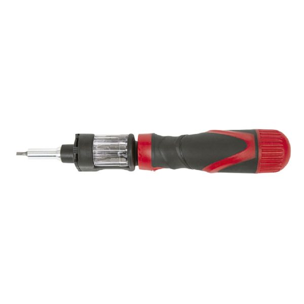 Mango ergon?mico antideslizante con sistema de carga autom?tica de puntas. Carraca reversible de 18 dientes. 12 puntas atornillado acero S2 (en dos cartuchos de 6 puntas cada uno). Cartucho principal: Ph1 / Ph2 / Ph3 y Bocas planas: 3 mm/4 mm/5 mm. Segundo cartucho en mango.. Allen: 3 mm/4 mm/5 mm, Torx: T10/T15/T20.. Dimensiones: 245x40 mm.