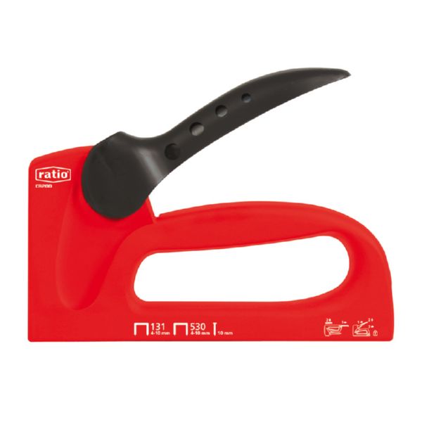 Armaz?n pl?stico. Sistema de bloqueo y seguridad en maneta. Ergon?mica y confortable. Incluye 300 grapas 530 (6-8 mm). Grapas 131 (4-10 mm). Grapas 530 (4-10 mm). Punta con cabeza 1,2 mm x long. m?x. 10 mm.