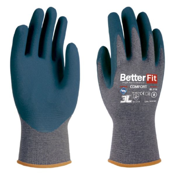 Soporte de algodón/nilón. Recubrimiento especial de nitrilo foam en palma y uñeros. Tratamiento Sanitized® Actifresh® que evita la irritación de la piel, los malos olores y la eliminación de las bacteria producidas por el sudor. Usos: automoción, mecánica, cartonajes, agricultura, carga y descarga, jardinería y uso general. Cat II. Norma EN388. Talla 8.