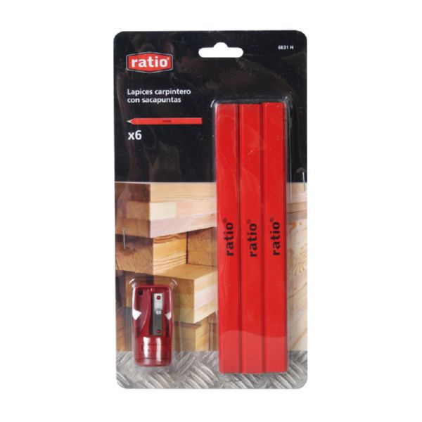 Juego 6 lápices madera y sacapuntas especial. 175 mm.