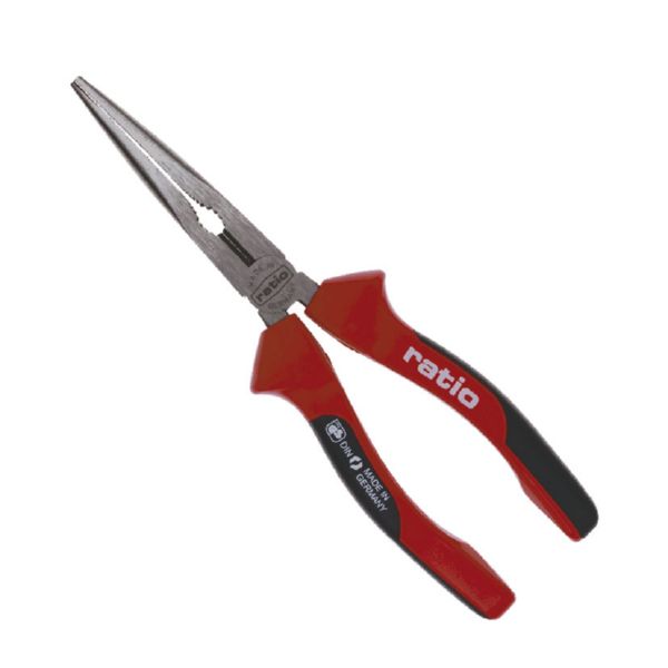 Acero especial acabado pulido y negro atramentado. Tratamiento de inducción en zonas de corte. Mango ergonómico antideslizante bimaterial. Normas DIN ISO. Homologación VPA-GS. Boca semi-redonda. 200 mm. Punta recta.