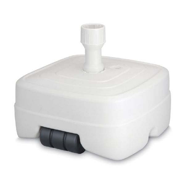 Resina color blanco. 46x46xh.22 cm. ø mástil: 32/48 mm. Capacidad: 45 litros.