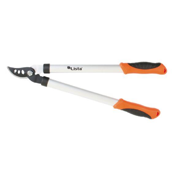 Corte deslizante (Bypass). Cuchilla recubrimiento antiadherente. Brazos tubulares de aluminio. Empuñaduras ergonómicas antideslizantes. ø corte 25 mm. Longitud 53 cm.