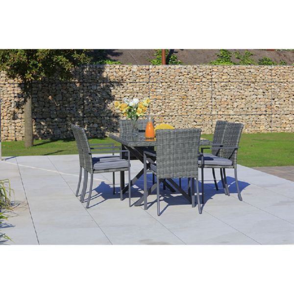 Acero y ratán sintético gris oscuro. Mesa acero y ratán sintético 160x90xh.74 cm.