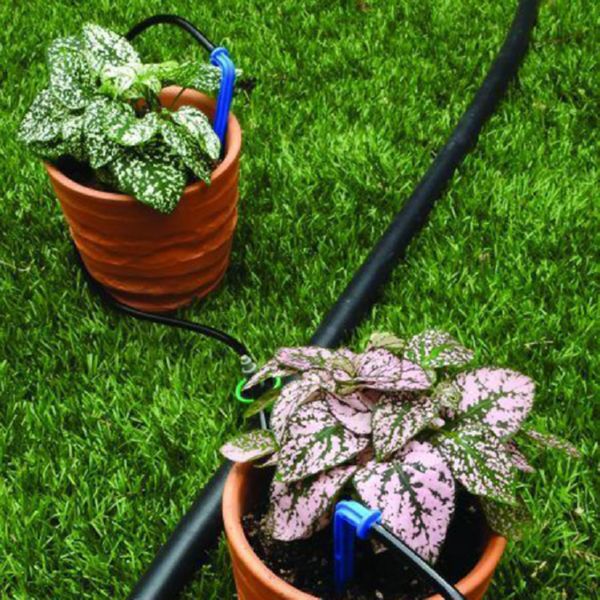 Autocompensado: aporte de agua constante, independientemente de la variación de desnivel y presión. Antidrenante: no evacua el agua que queda en la tubería tras cortar el riego. Riego muy preciso, inmediato. 1 goteros autocompensados 4 l/h antidrenantes. 2 distribuidores de 2 salidas. 4 tramos microtubo de 60 cm. 2 piquetas-goteros 2 l/h.