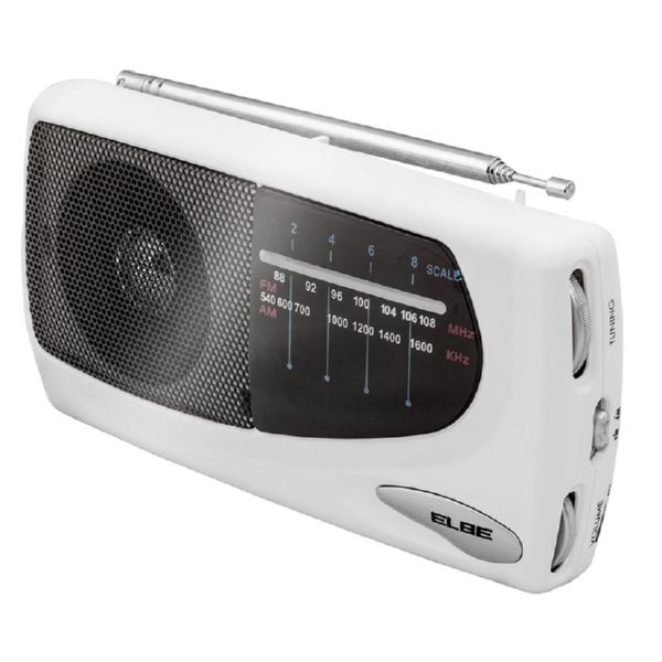 Sintonizador analógico. Funciona con 2 pilas AA (no incluidas). AM/FM.