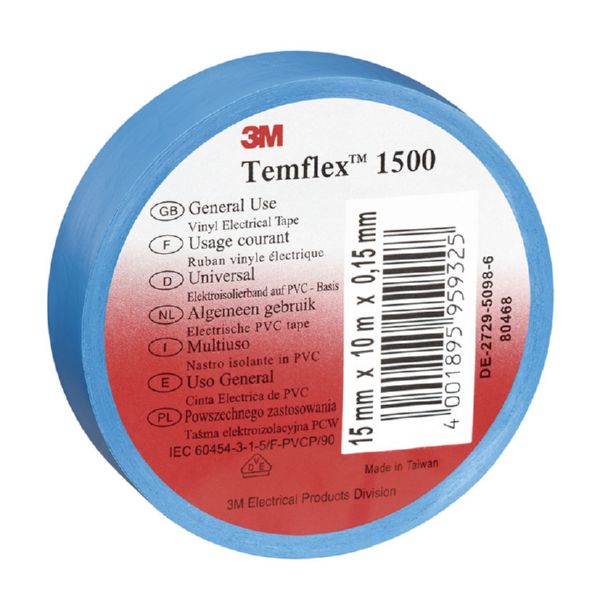Vinilo. Espesor 0,15 mm. Adhesivo de caucho sensible a la presión. 20 m x 19 mm. Azul.