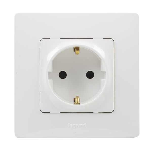 Color blanco. Diseñado para facilitar el montaje en el hogar. El mecanismo e interruptor Niloé ayuda a reducir el impacto medioambiental durante el ciclo de vida del producto. Base enchufe.
