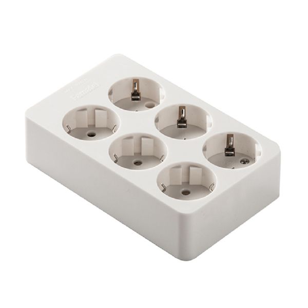 Instalación en superficies. T/T lateral. Cuadrada. 10/16 A. 250 V. 6 tomas.