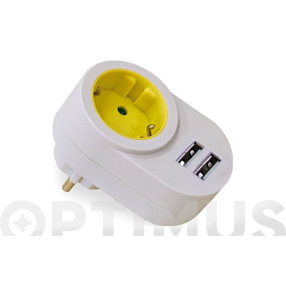 16 A.-250 V. 2 tomas USB para teléfonos, lectores MP3, cámaras, etc. Blanco.