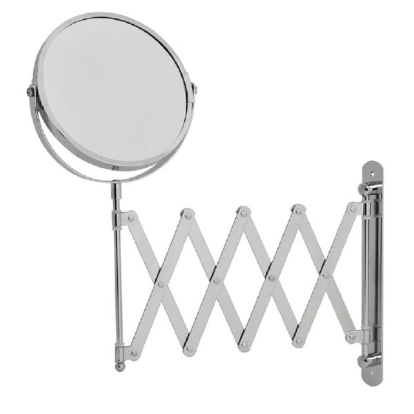 Espejo doble giratorio: normal y 5 aumentos. Acero inoxidable/metal cromado. Espejo ø 15 cm. Extensible.