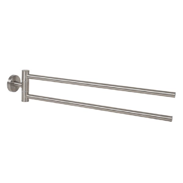 Acero inoxidable satinado. Sistema de fijación con tornillos. Toallero doble articulado.