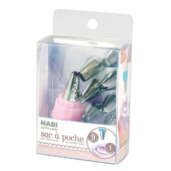 Plástico lavable. Boquilla acero inoxidables. 9 boquillas intercambiables.
