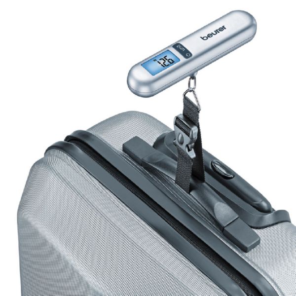 Pantalla LCD de fácil lectura con iluminación azul. Correa y flexómetro integrado. Apagado automático. 1 pila 3V CR2032 incluida. Peso máx: 40 kg. Graduación: 10 gr.