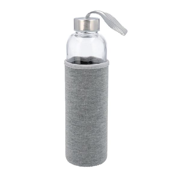 BOTELLA VIDRIO C/FUNDA GRIS 0,6 LT.QD