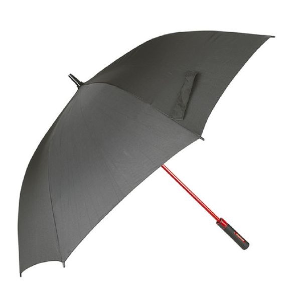 8 varillas de fibra de vidrio en color rojo. Ultrarresistente al agua y al viento. Empuñadura recta soft touch. Color negro/rojo. ø 120 cm.