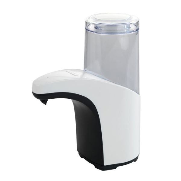 Higiénico dosificador de jabón con sensor y depósito transparente. Mediante el sensor infrarrojo se obtiene la cantidad suficiente de jabón, regulable individualmente. No gotea y puede rellenarse. Funciona con 4 pilas AA no incluidas. Depósito de 300 ml. 8x19,5x15 cm. Sirve para cualquier tipo de gel, ya sea jabón o gel hidroalcohólico, salvo para soluciones de tipo spray. ABS Blanco.