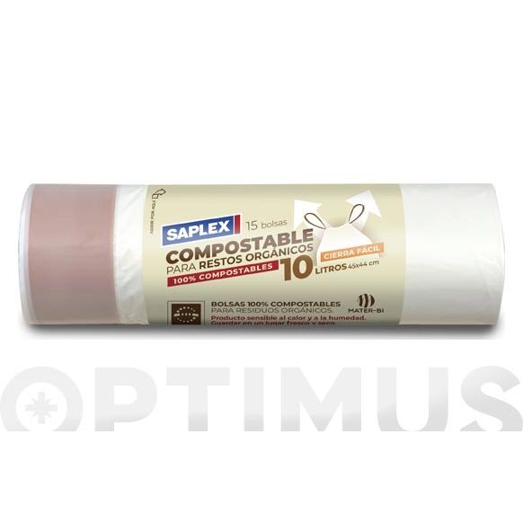 Especial para la recogida selectiva de residuos orgánicos. 10 litros. Cierra fácil. 45x44 cm. 15 unid.