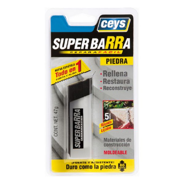 Repara de forma definitiva piedra, hormigón, cemento, granito, yeso, escayola, mármol, cerámica y terracona. 52 gr.