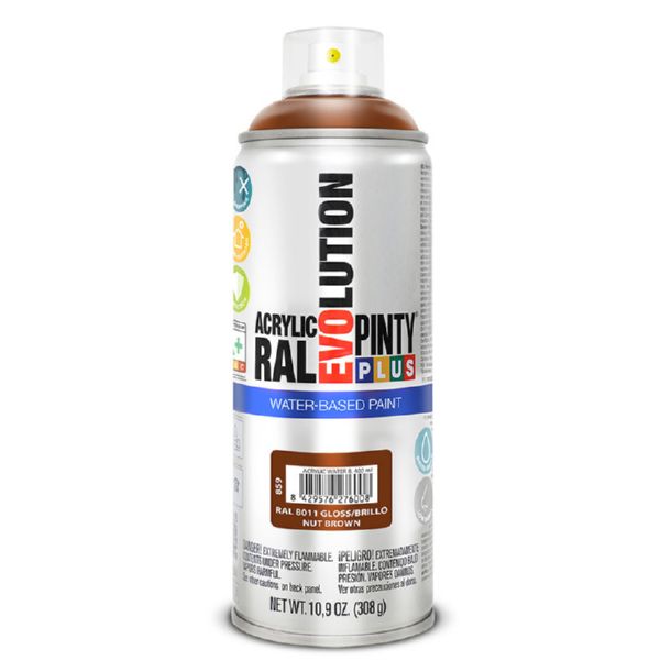 Aplicable sobre cualquier superficie. En interior y exterior. Rendimiento 2 m?. Secado superficial en 15 minutos. Secado total en 1h. Repintado en 15 min. Resistencia t?rmica 90 ?C. 400 ml. Marr?n. Ral 8011.