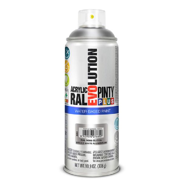Aplicable sobre cualquier superficie. En interior y exterior. Rendimiento 2 m?. Secado superficial en 15 minutos. Secado total en 1h. Repintado en 15 min. Resistencia t?rmica 90 ?C. 400 ml. Aluminio. Ral 9006.