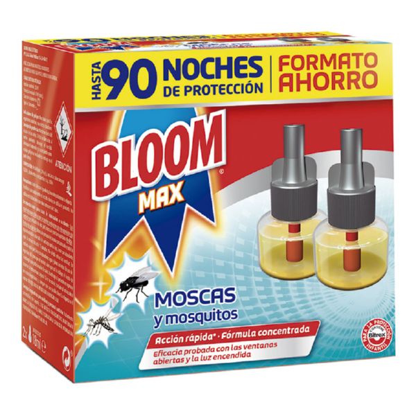 Eficaz contra mosquito común y Tigre. Cada recambio hasta 45 noches de protección. Kit 2 recambios Bloom Max