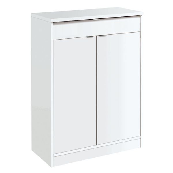 2 puertas. Tapa espesor 2,2 cm. Estantes regulables en altura. Tiradores acabados en aluminio. Gu?as met?licas. Capacidad 20 pares. 75x36xh.101 cm. Blanco.