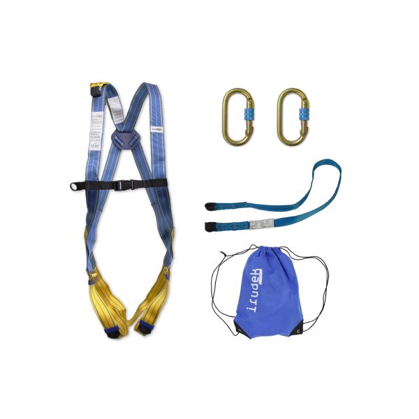 Arnés un punto, elemento amarre y 2 mosquetones. Cinta 44 mm poliéster.