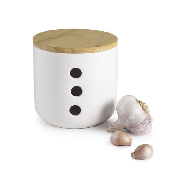 Cerámica y bambú. Tarro p/ajos ø 12xh.12 cm.